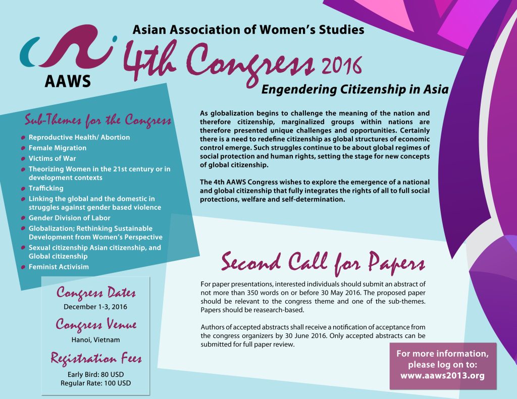 The 4th Congress of AAWS 2016 ‘Engendering Citizenship in Asia’